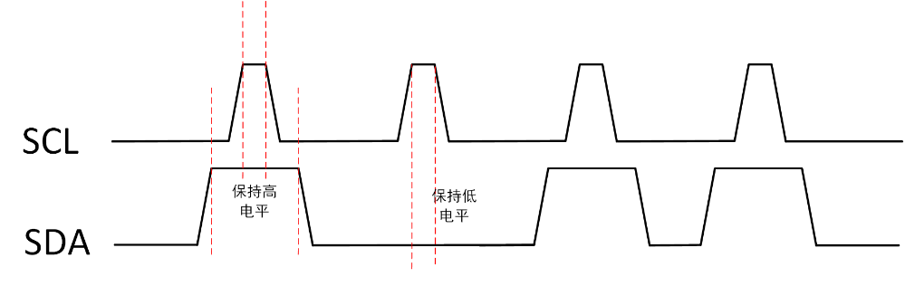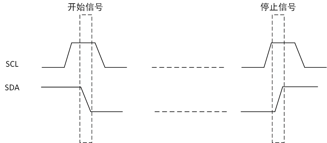 起始、停止条件:IIC的起始信号为当时钟信号线(SCL)为高电平时,数据线(SDA)产生一个下降沿,停止信号为当时钟信号线(SCL)为高电平时,数据线(SDA)产生一个上升沿。